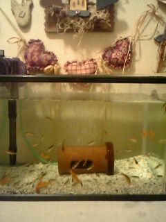 おかげで玄関脇の小さいほうの水槽にはこんなに金魚が・・・