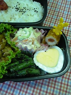 息子くんのお弁当にハートのゆで卵はちょっと文句言われそうだけど、パパのは全然オッケーだよねっ