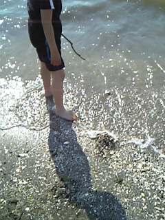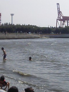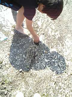 そこの海岸で潮干狩りに・・・というより、水遊びかな