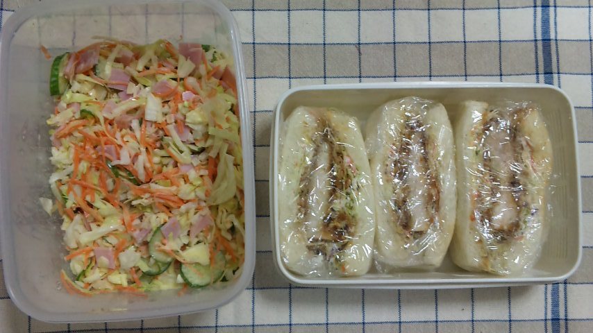 スパゲティーとカツサンドとコールスローと