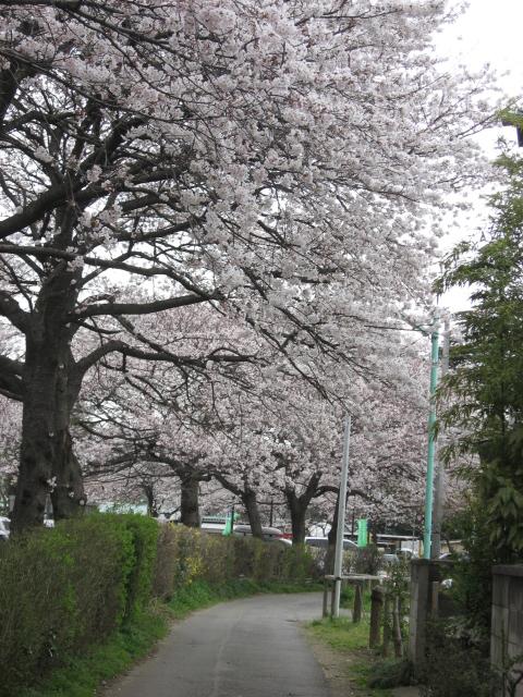 公園からの帰り道、桜の木の下を自転車で通りながら。