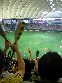 私が座っている席は阪神のファンの方がたくさんいるところ。^^;