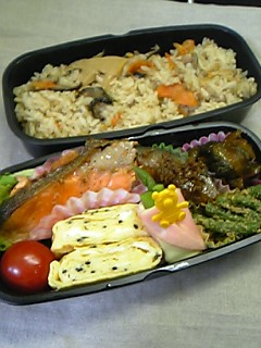焼鮭・黒ゴマ入り厚焼き玉子・カボチャのそぼろ煮・