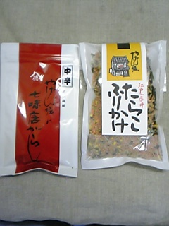 浅草の“やげん掘”の七味とうがらしとたらこふりかけ