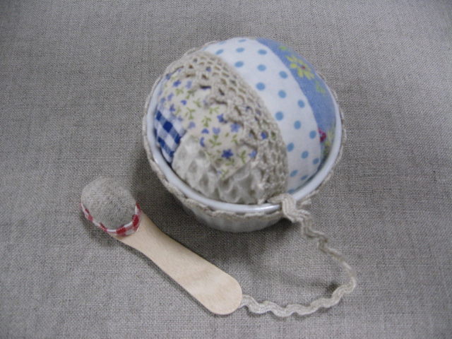 このスプーンのピンクッション針を刺しても倒れなくて、かわいくて笑っちゃいました