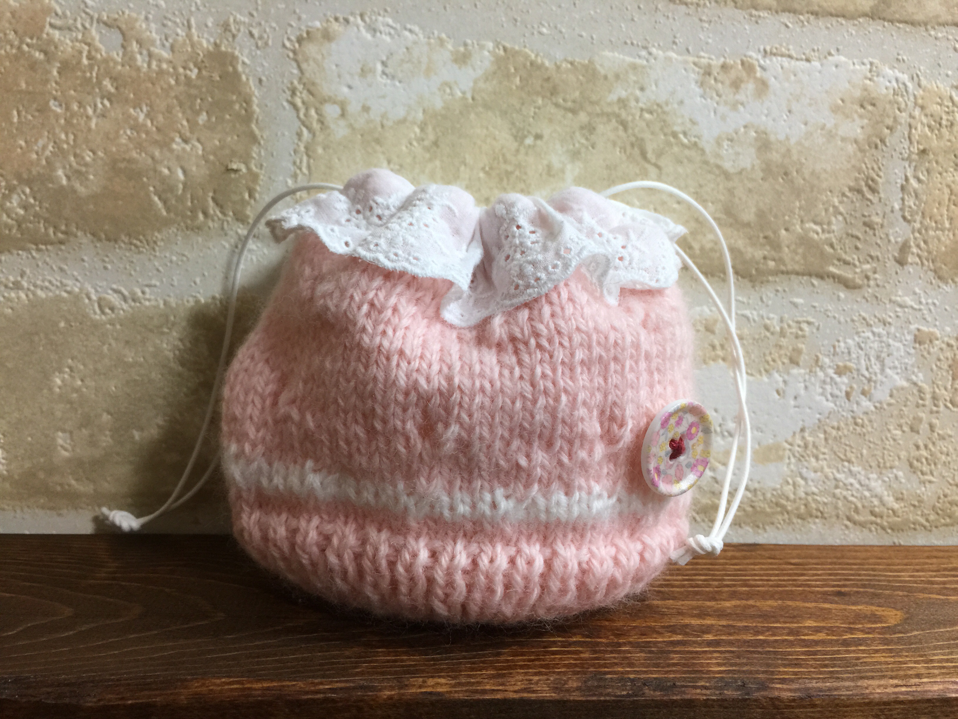 ピンクが似合う お友達に イチゴ巾着を作りました。